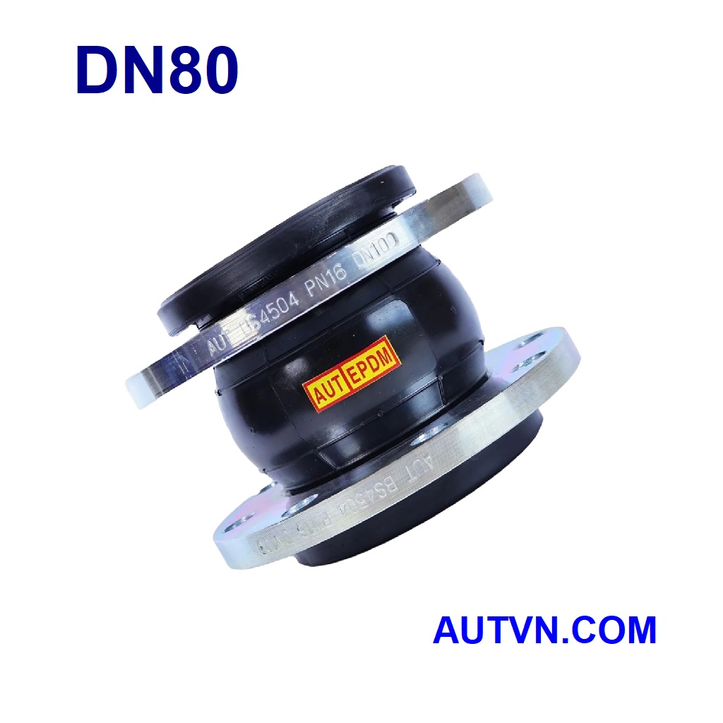 Khớp nối mềm AUT DN80 được sản xuất bằng cao su EPDM chất lượng cao, kết hợp với lớp vải gia cường và vòng thép chịu lực bên trong, cùng mặt bích thép carbon phủ epoxy. Nhờ đó, sản phẩm đảm bảo độ bền, khả năng chống rung tốt và tương thích với tiêu chuẩn mặt bích BS4504 – một trong những tiêu chuẩn phổ biến nhất tại Việt Nam.